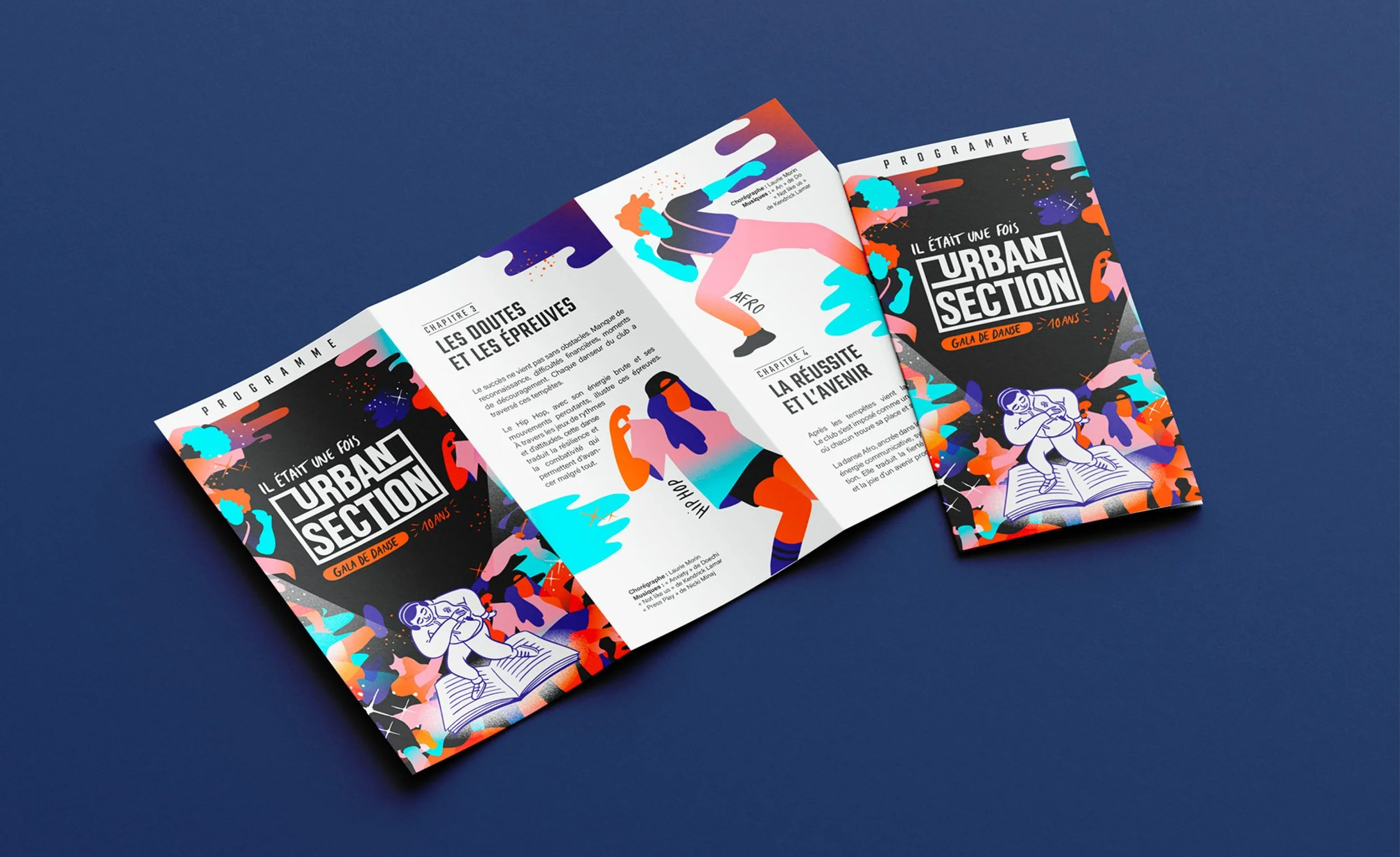 Du print (affiche, tickets d’entrée, programme) et du numérique (écran scénique, habillages et publications pour les réseaux sociaux), on ne néglige rien pour faire venir et vibrer tout ce beau monde au rythme des chorégraphies de l’Urban Section !